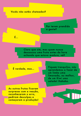 Após o sucesso do livro “Milkshake do Vampiro”, a dupla Pedro Vasconcellos e Nina Gaul está de volta contando uma nova aventura inusitada das frutas mais divertidas e abusadas do pedaço. Dessa vez, a história parte da misteriosa pergunta: “Aonde foram parar os Kiwis?”.